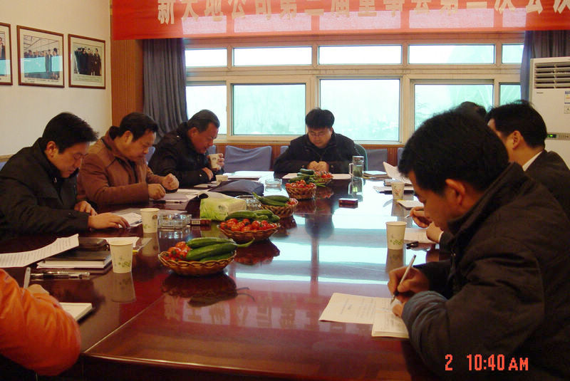 3月2日上午,杨凌西北农林科大新天地设施农业开发有限公司第三届董事会第二次会议在新天地公司二楼会议室召开。公司董事长张建平同志主持会议,公司董事戴伯平、景军胜、薛小荣同志参加会议,公司监事杨留印、石智民、宋胭脂及公司各部门经理列席了会议。 会上,公司总经理薛小荣同志代表经营班子对新天地公司2011年度工作完成情况和2012年的工作思路进行了详细的汇报,董事会对经营班子在2011年度所取得的成绩给予了充分肯定,对园区和酒店在经营发展方面提出了很好的建议和要求,要求经营班子严格按照董事会提出的建议和要求进行落实,不断加强企业经营管理,力争使公司经营管理水平和企业经济效益迈上新的台阶。会议原则同意公司2011年度工作总结和2012年工作思路。 会议同时审议通过了公司资产报损、2012年维修改造及育苗温室建设方案的报告,要求在新建育苗温室项目资金筹措方面,加大项目申报力度,积极争取项目扶持资金。   听取汇报   认真审议   通过议案