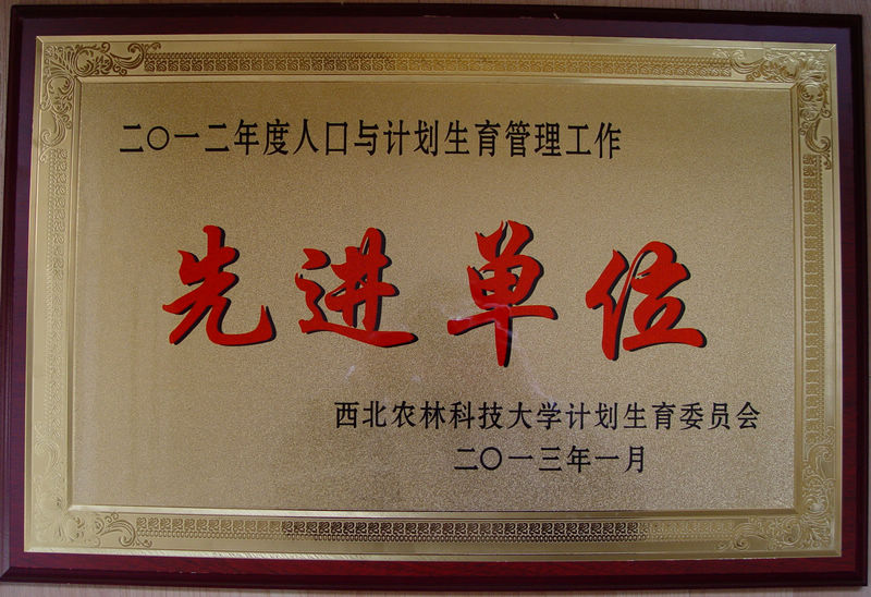 公司荣获我校2012年度人口与计划生育工作先进集体